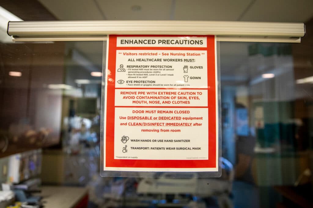 None of these patients can have visitors; not on the floor, not peering through the glass windows, and certainly not at bedside. The only movement in the hallway and rooms comes from caregivers, who incessantly peel off and replace layers of plastic gowns, gloves, masks and face shields.