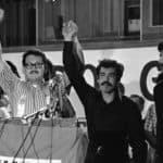 (Photo: Jose A. Gutierrez, left, of Texas, and Rodolfo “Corky” Gonzales of Colorado, stand before the La Raza Unida Party national convention in El Paso, Texas, Sept. 4, 1972. Fred Kaufman/AP)