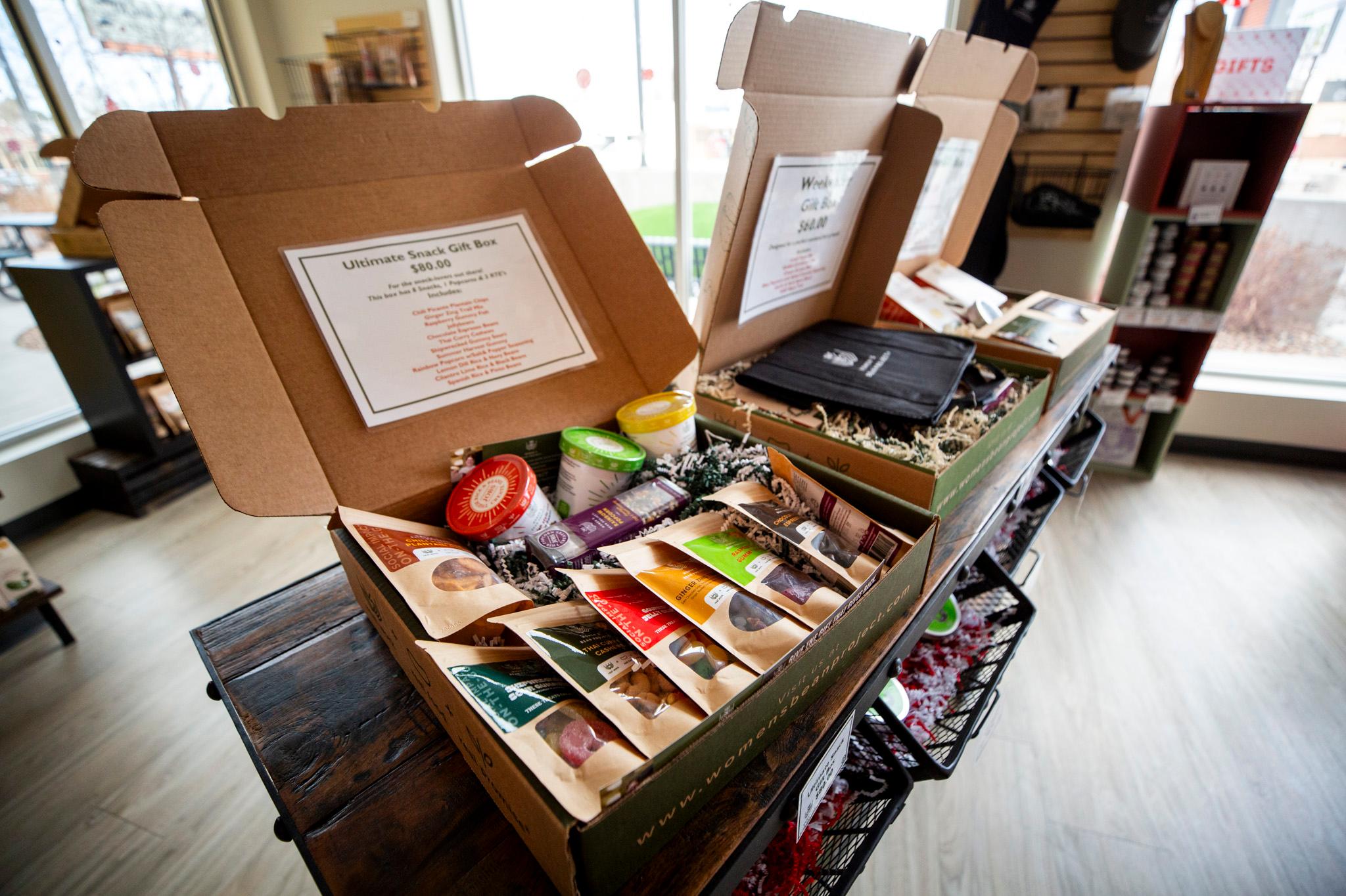Snack boxes for sale at the Women's Bean Project's headquarters in Denver's Athmar Park neighborhood. Dec. 23, 2025.