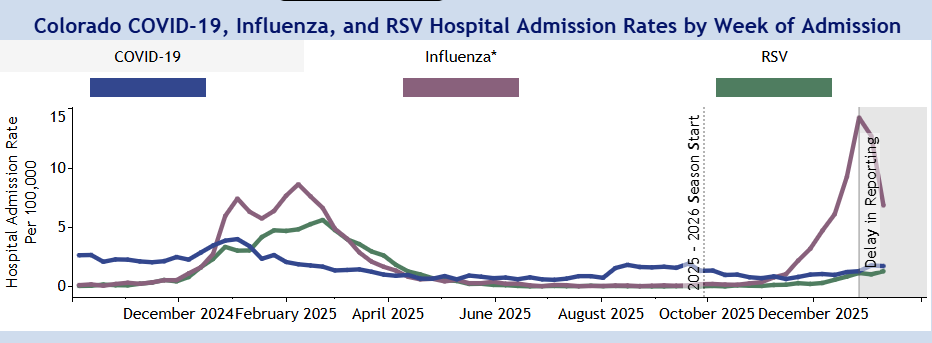 But now the numbers, in Colorado at least, have come down the last two weeks. Still, flu cases remain high in the state. About 400 people were currently hospitalized on Wednesday, a drop of 440 from the peak at the end of December, according to the state health department.