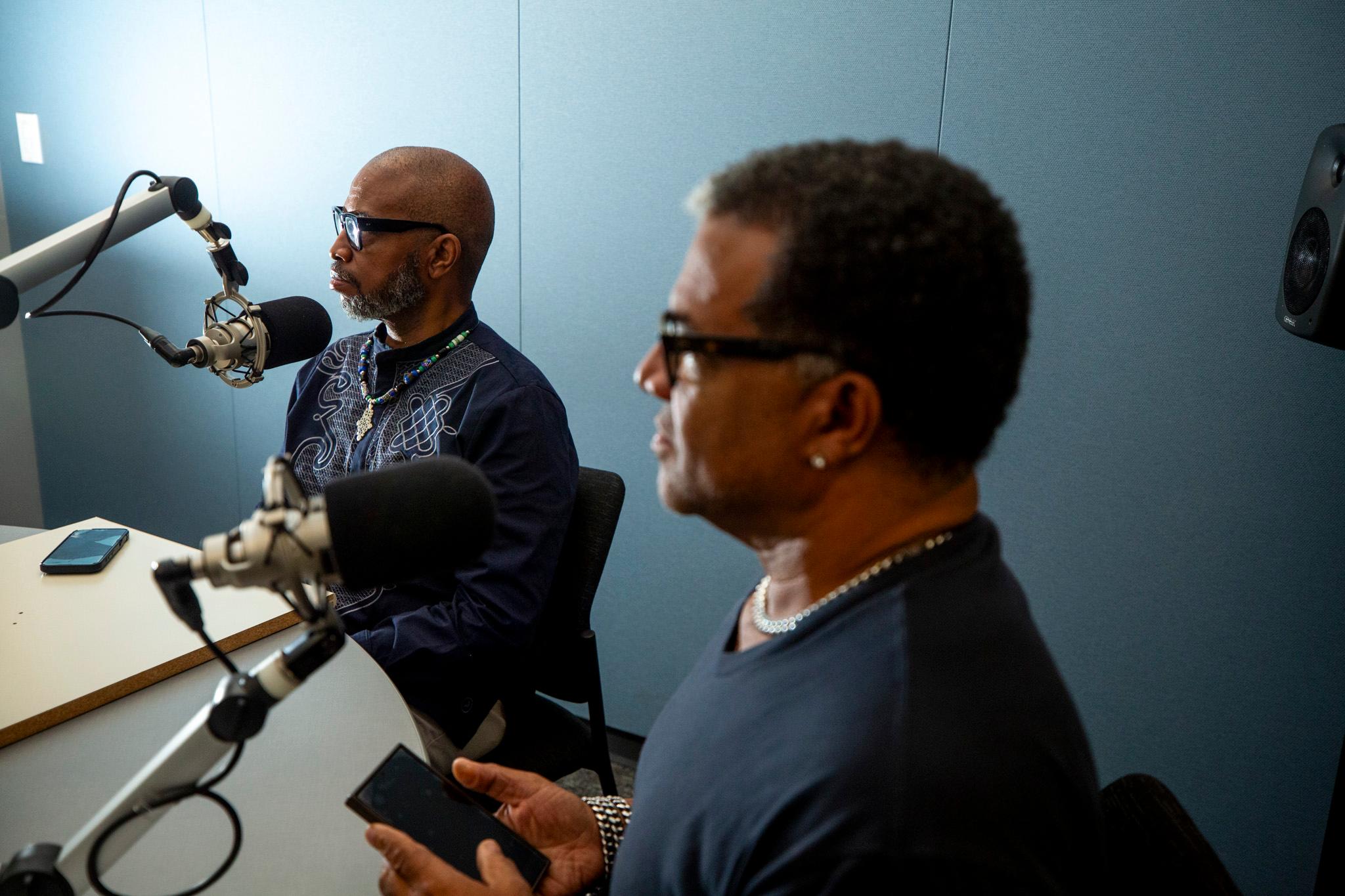 Kevin J. Beaty/DenveriteTerrance Carroll, former speaker of the Colorado House (left), and Alton Dillard, head of the Dillard consulting group, speak to Colorado Matters about the Voting Rights Act. Oct. 23, 2025.